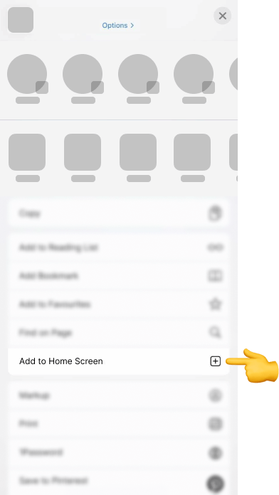 2. In the newly opened menu, scroll down the menu until you find ‘Add to Home Screen’ and then tap it to select this option.